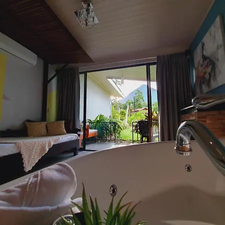 Yellow Tree Suites La Fortuna距离拉福图纳机场约有15公里的路程;他还有按摩浴缸和公共热浴室等一流的设施.
